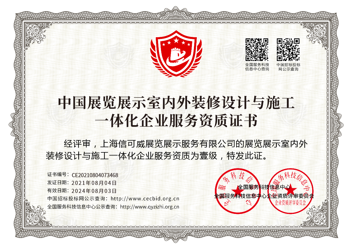 上海信可威展覽展示服務有限公司專業從事展廳設計、展覽展示活動策劃、展臺設計搭建的展覽公司,憑借多年的市場經驗,為客戶提供前期策劃、設計創意、現場搭建和維護、倉儲、全國巡展等全流程的整體解決方案。