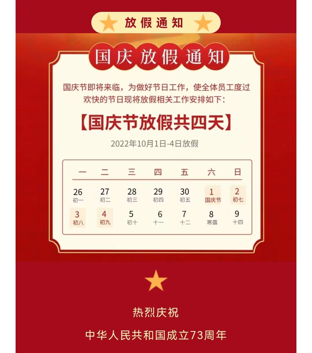 國慶節放假通知